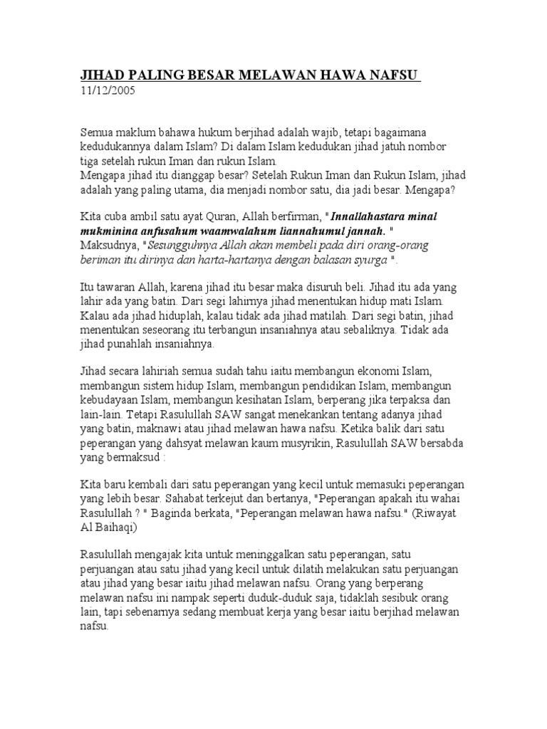 Apa Arti Jihad Jenis Jenis Jihad Jihad Melawan Hawa Nafsu